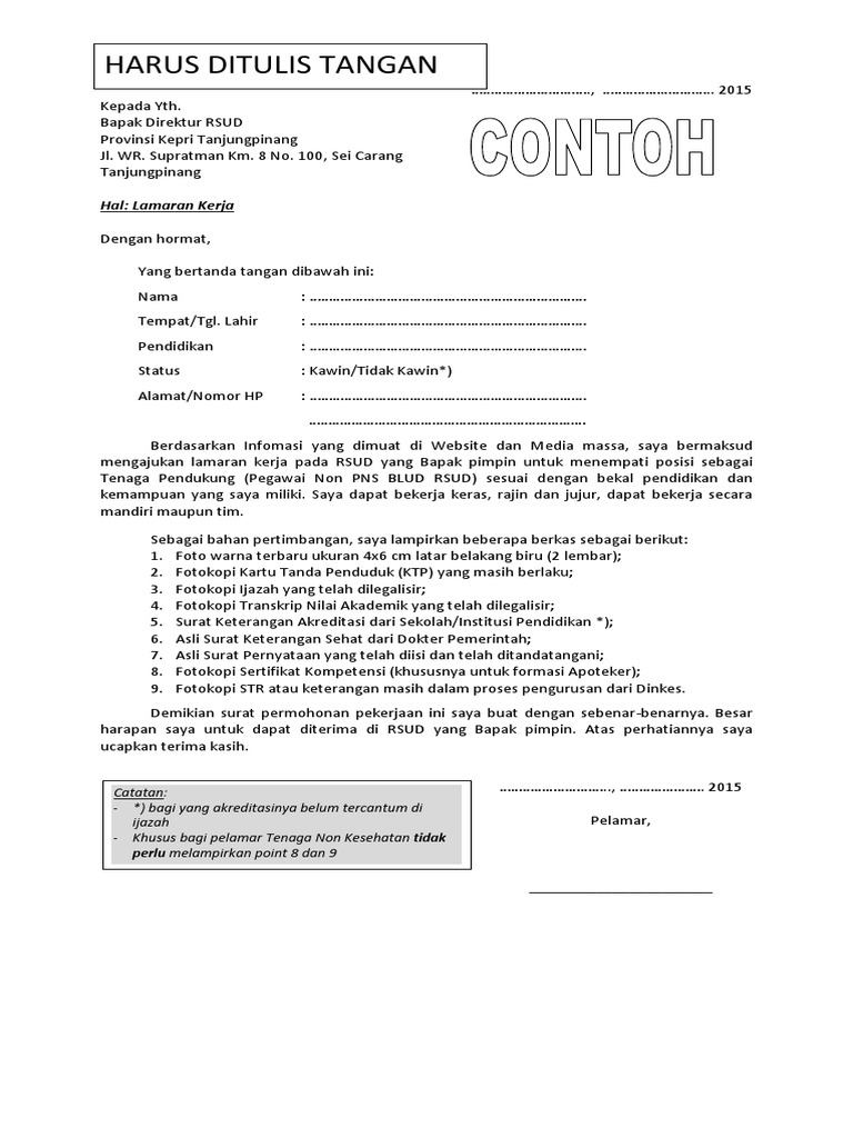 Contoh Surat Lamaran Kerja Non Pns Tulis Tanganjpg Id Lowker