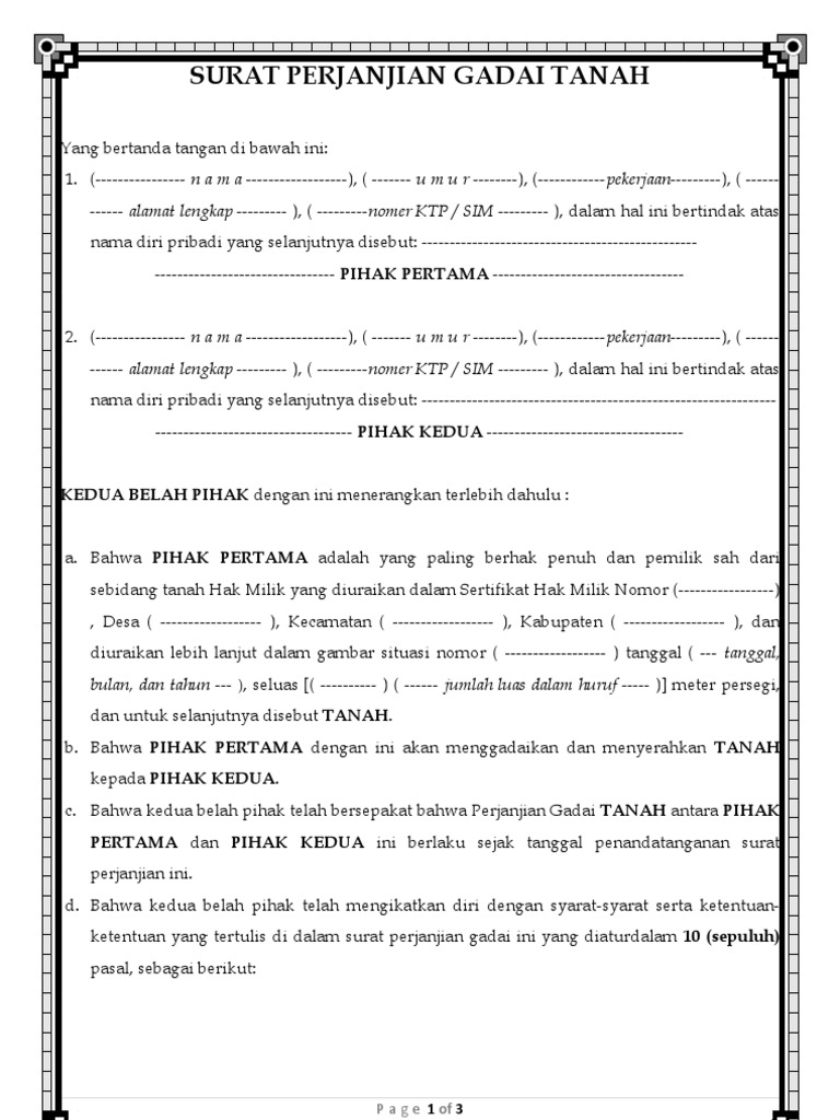 Mencari informasi terkait Contoh Surat Perjanjian Pinjam Pakai Sertifikat Tanah.