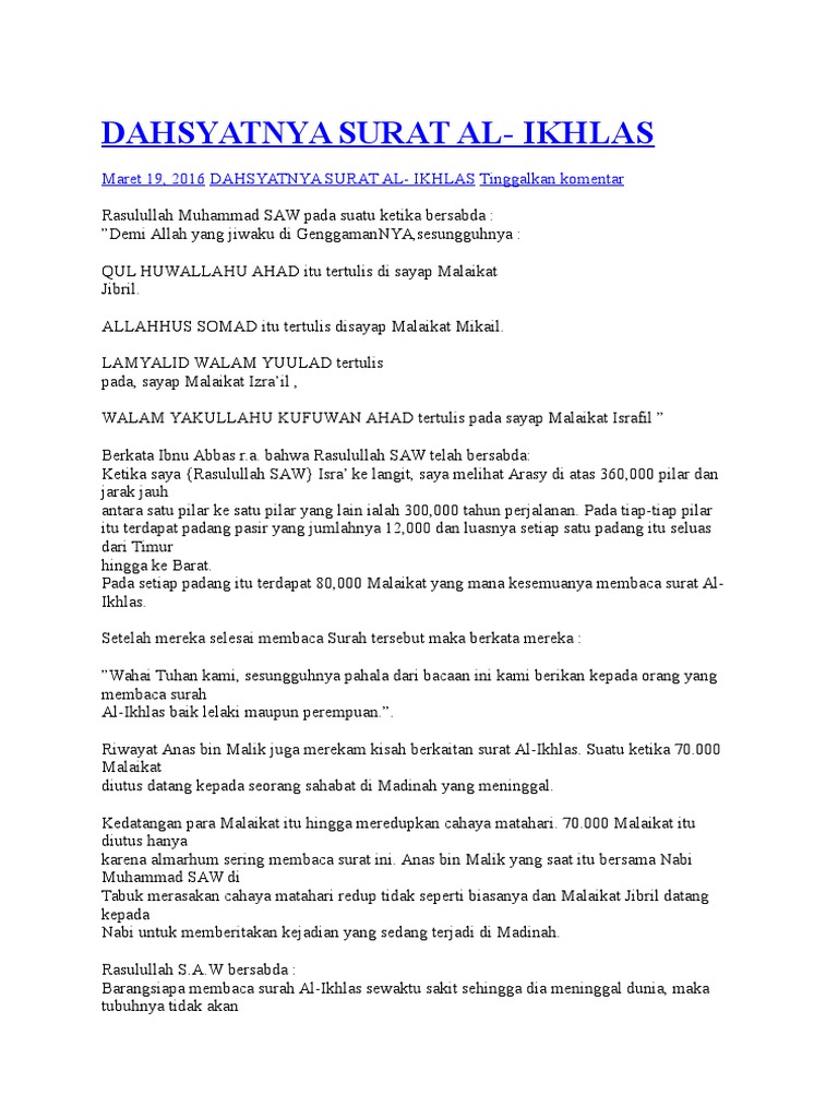 Itulah ikhlas itu seperti surat al ikhlas yang dapat admin kumpulkan. Admin blog Kumpulan Surat Penting 2019 juga mengumpulkan gambar-gambar lainnya terkait ikhlas itu seperti surat al ikhlas dibawah ini.