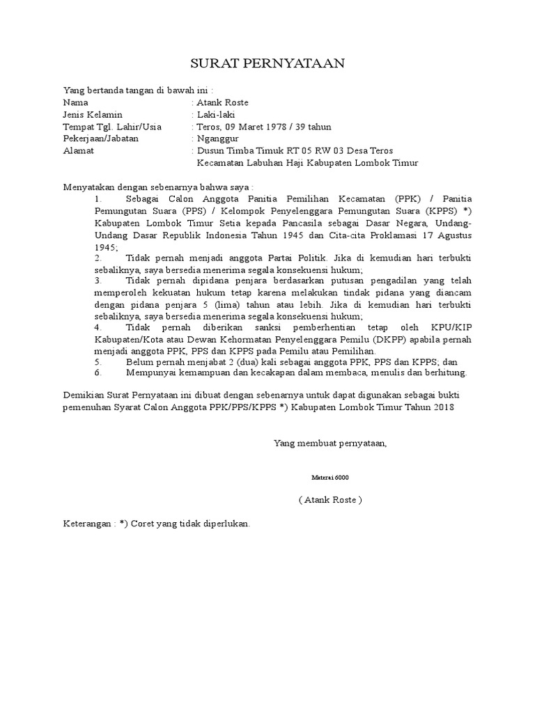 Surat Pernyataan Ppkppskpps Pemilu Tahun 2019 Blog Om Jhon