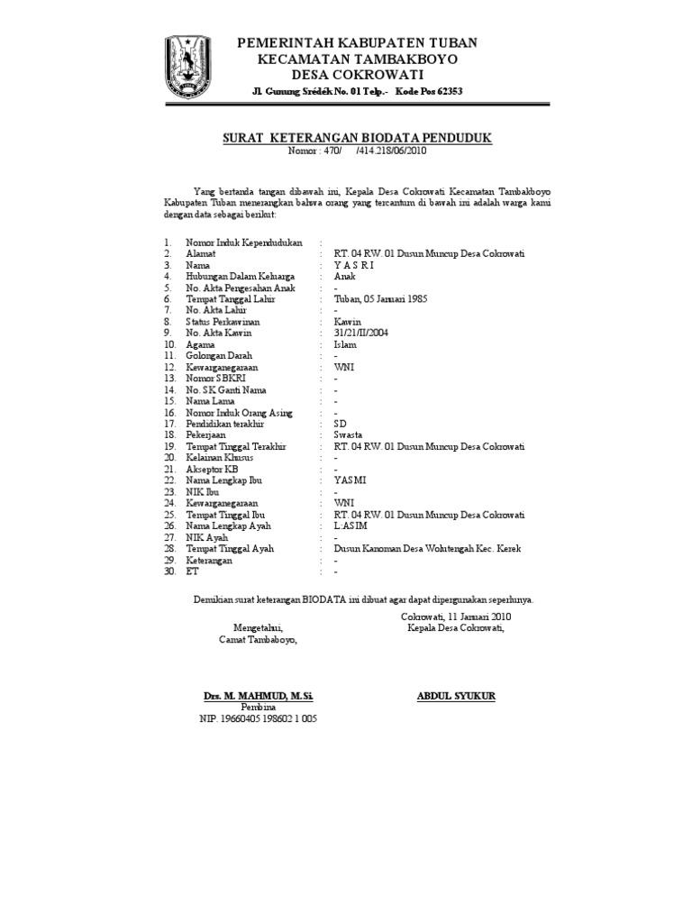 Contoh Surat Pernyataan Warga Simak Gambar Berikut