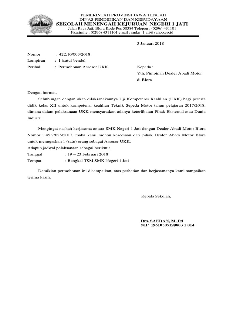 Surat Permohonan Assesor Ukk