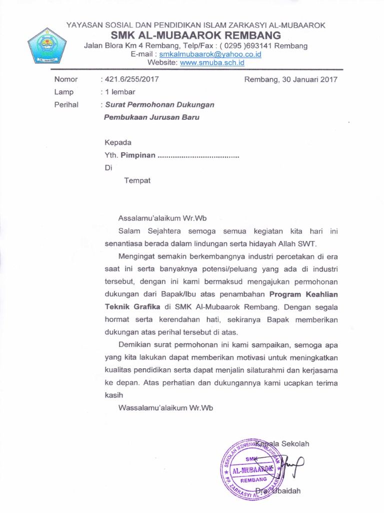 Itulah contoh surat permohonan pembukaan jurusan baru smk yang dapat admin kumpulkan. Admin blog Kumpulan Surat Penting 2019 juga mengumpulkan gambar-gambar lainnya terkait contoh surat permohonan pembukaan jurusan baru smk dibawah ini.