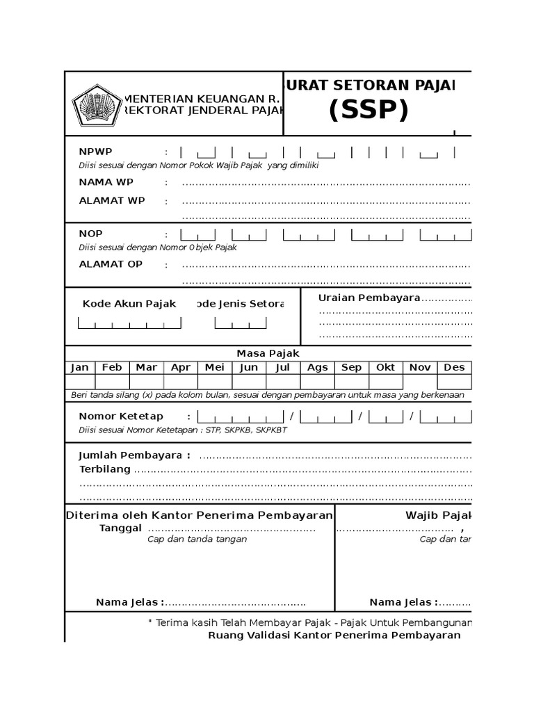 Formulir Surat Setoran Pajak Ssp Kp2kp Perdagangan Academiaedu