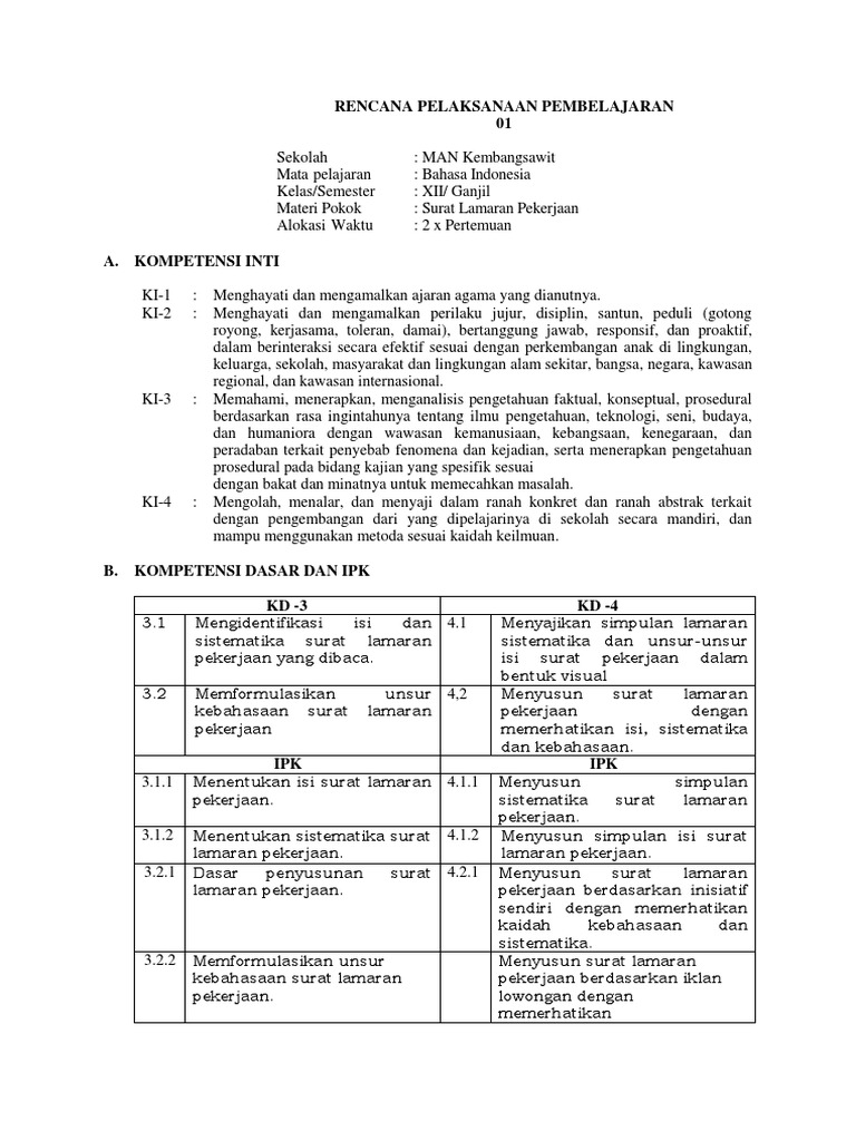 Rpp 1 Xii Lamaran Kerja