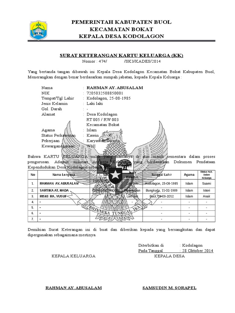 Contoh Surat Keterangan Kartu Keluarga Word Mpfdocuments Website