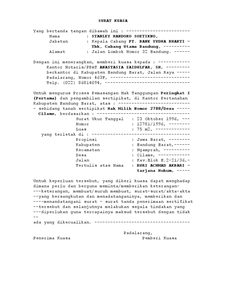 2 contoh surat kuasa pengambilan sertifikat berikut ini adalah contoh surat kuasa pengambilan sertifikat yang bisa digunakan untuk pengambilan sertifikat tanah atau rumah baik itu di bank karena sebagai jaminan pinjaman yang sudah bisa diambil karena sudah lunas atau di kantor badan pertanahan nasional bpn. Untuk kali ini kita masih membahas dengan topik yang sama yaitu bagaimana membuat surat kuasa. Saat mengajukan kredit pemilikan rumah di bank biasanya membutuhkan jaminan sertifikat entah itu sertifikat rumah atau sertifikat tanah.