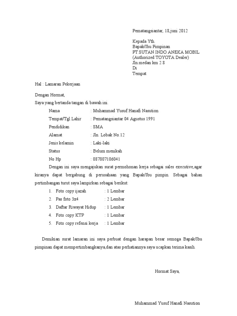 Contoh Surat Lamaran Kerja Di Dealer Honda Suratmenyuratnet