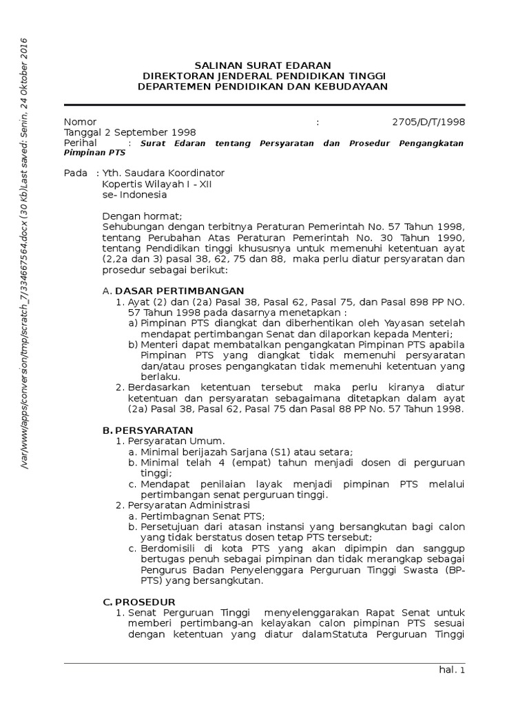 Koleksi admin mengenai Surat Edaran Dirjen Dikti Tentang Pengangkatan Pimpinan Pts.