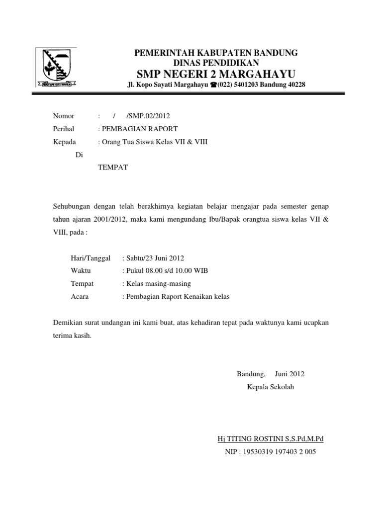 Contoh Surat Undangan Pembagian Rapor Portal Edukasi
